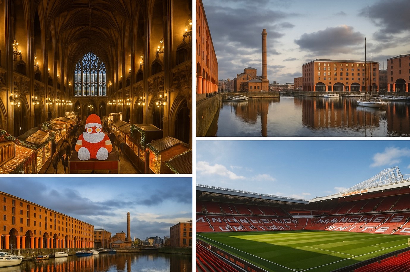 Stadium tour ⚽ (Old Trafford or Etihad) • Christmas markets & shopping • Farewell dinner + certificates